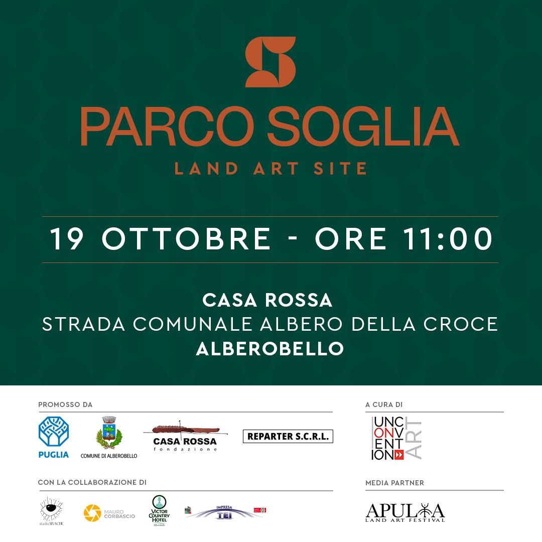 Il 19 Ottobre alle ore 11, presso la Casa Rossa di Alberobello in contrada Albero della Croce, sarà l'occasione per l'inaugurazione del “Parco Soglia” – Museo a Cielo Aperto di Land Art, un progetto a cura di Sara De Carlo con la direzione artistica di Carlo Palmisano, che nasce in dialogo con le aree naturalistiche circostanti la Casa Rossa di Alberobello. Un territorio di confine e di confino, che si fa scenario di un percorso artistico immersivo e riflessivo, articolato attraverso una serie di interventi che esplorano il concetto di “soglia”. Qui, la soglia è intesa come uno spazio liminale: una zona di passaggio, attesa e trasformazione. Un confine che non separa, ma connette. Un luogo dove passato e futuro, memoria e immaginazione, natura e storia si incontrano.