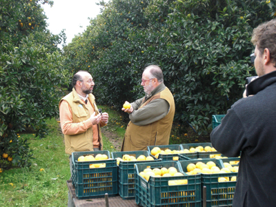 Raspelli illustrerà il procedimento delle arance in magazzino per il lavaggio in acqua arricchita con ozono che serve ad igienizzarla, asciugate in un tunnel con forte ventilazione che rimuove completamente l’umidità, divise per dimensione, cioè calibrate, ed infine confezionate per la commercializzazione.