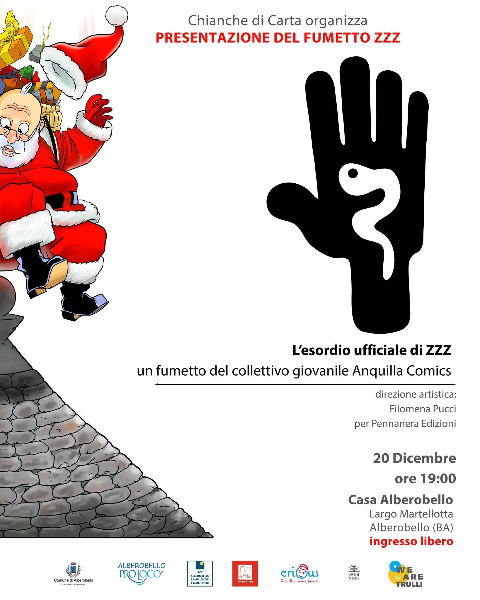 Il Festival del Fumetto e dell’Illustrazione CRIÒUS, promosso da Chianche di Carta e patrocinato dal Comune di Alberobello, è lieto di annunciare la presentazione in anteprima del fumetto “ZZZ!”, una nuova e suggestiva opera firmata dal collettivo giovanile Anquilla Comics, composto da Nicola Pio Piracci, Nicola Di Corato e Alessio Caiazza. Tre giovani talenti che fanno della loro diversità un punto di forza.