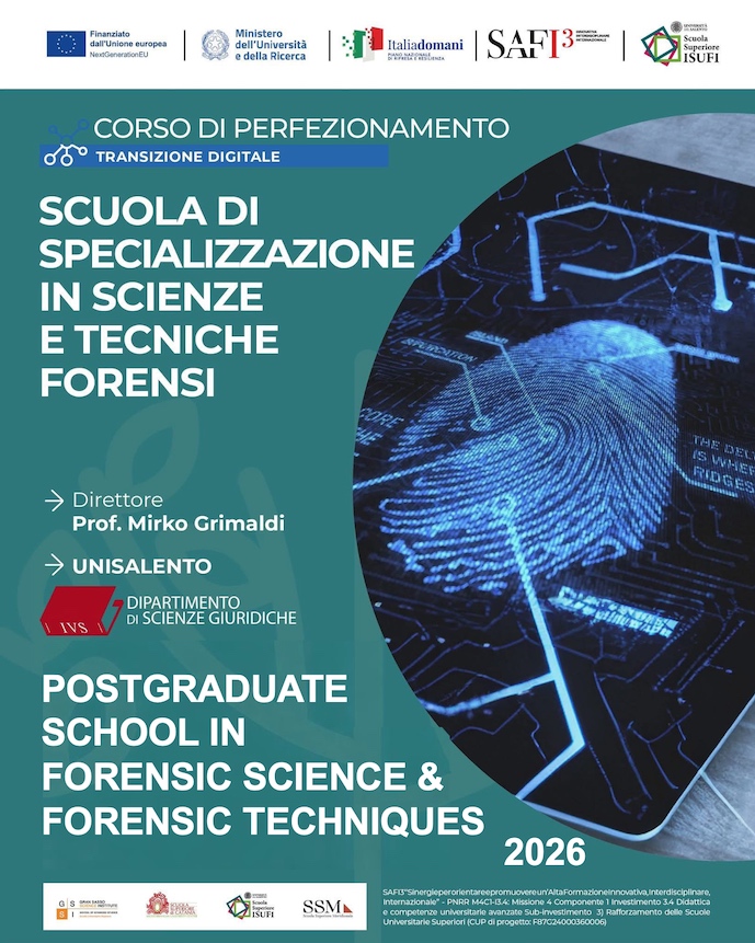 Lecce, dicembre 2025 – Il Dipartimento di Scienze Giuridiche dell’Università del Salento annuncia con orgoglio l’attivazione della nuova Scuola di Specializzazione in Scienze e Tecniche Forensi, la cui prima edizione prenderà ufficialmente avvio a gennaio 2026, sotto la direzione del professore Mirko Grimaldi.