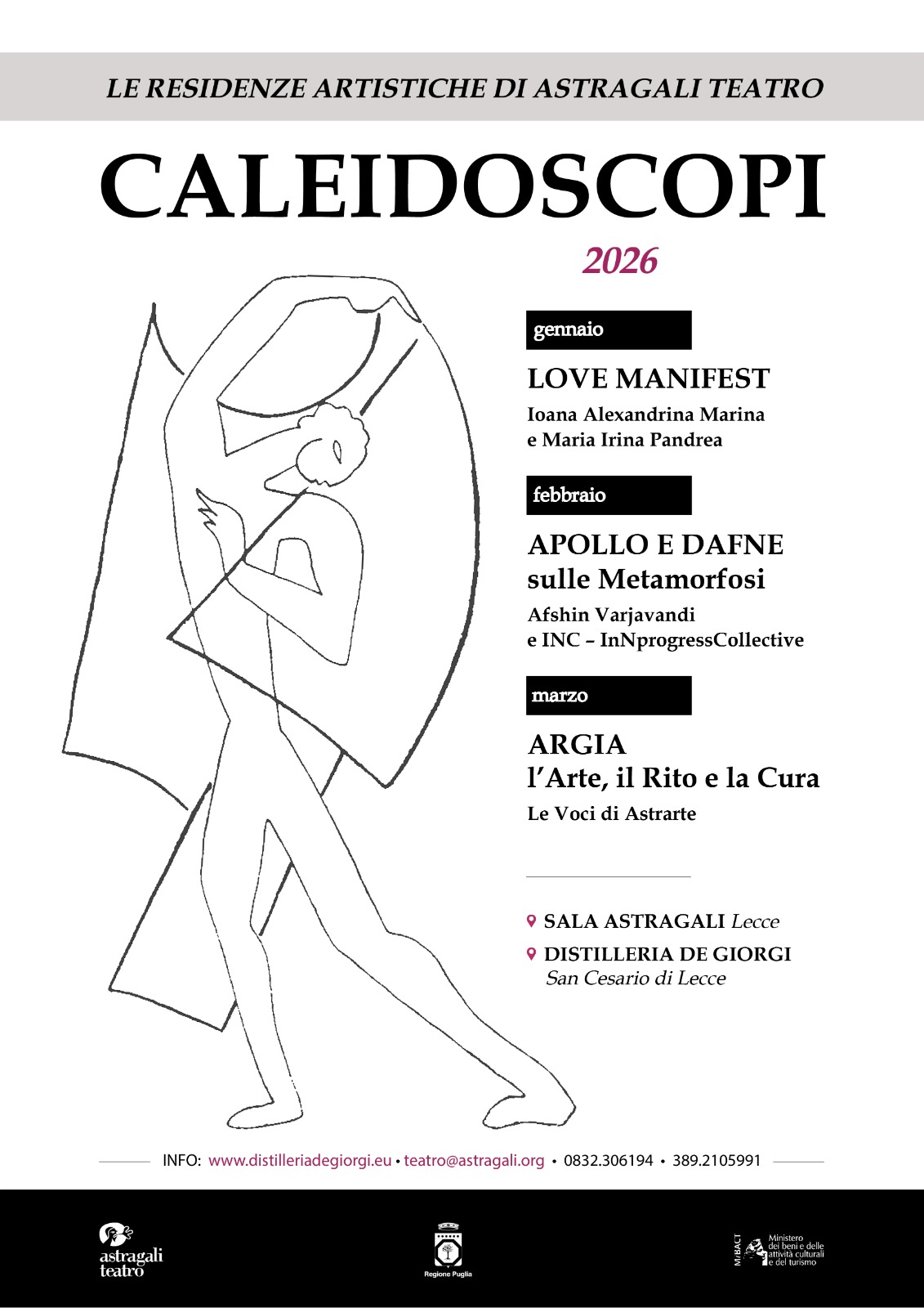 “Caleidoscopi” è il progetto di Residenze Artistiche di Astràgali Teatro sostenuto da “Residenze per Artisti nei territori” edizione 2025-2027 del Ministero della Cultura e dalla Regione Puglia.